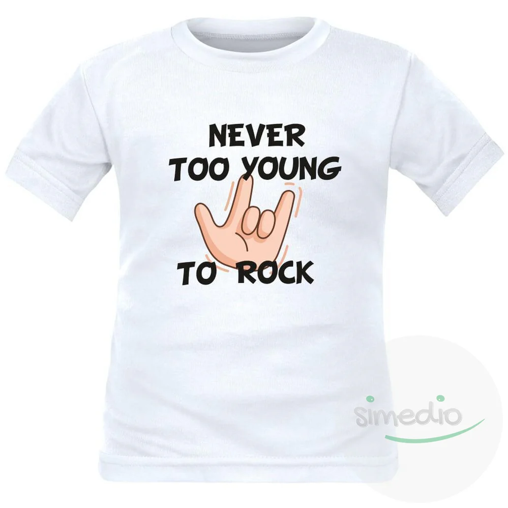 Grande inscription sur le devant : NEVER TOO YOUNG TO ROCK