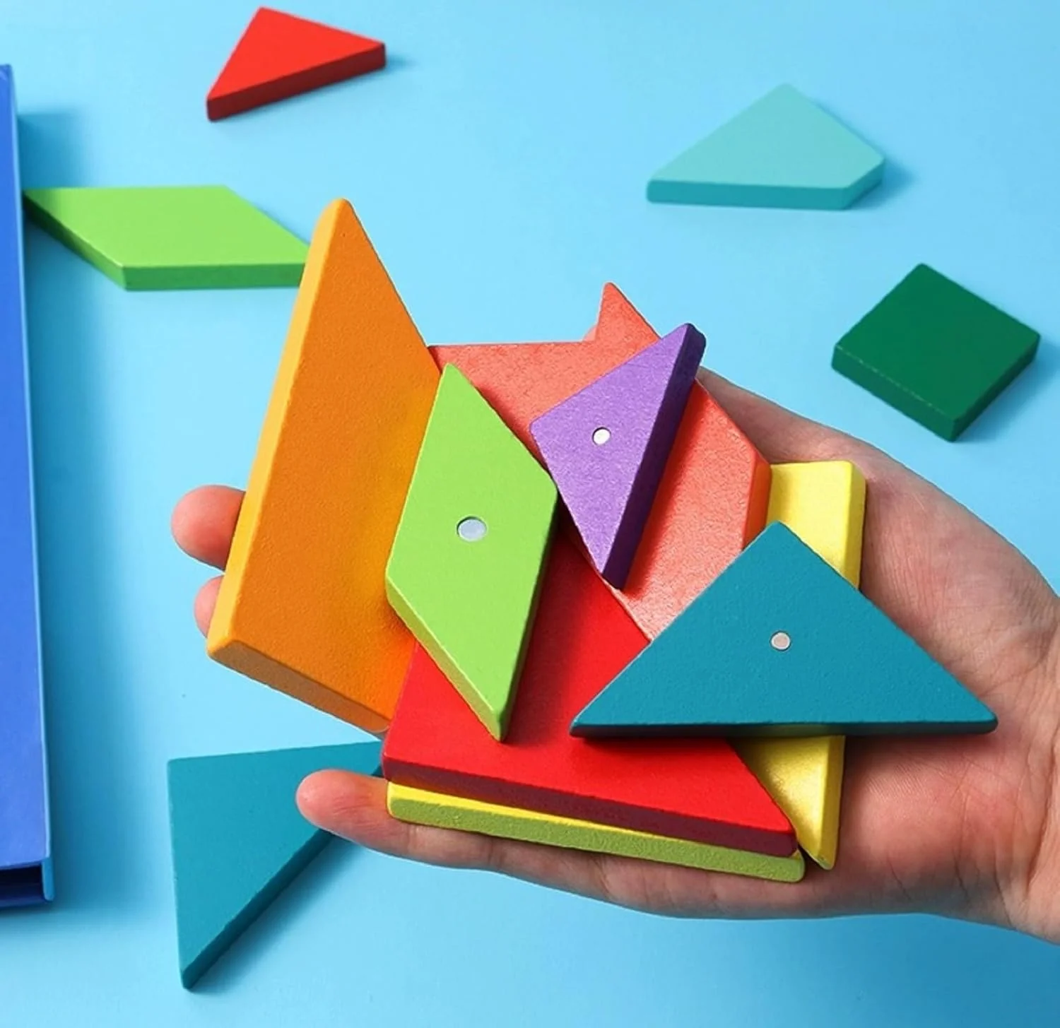 Laissez votre enfant explorer son côté artistique ! Le Tangram Montessori offre une multitude de combinaisons, stimulant la créativité et permettant de créer des formes uniques.
