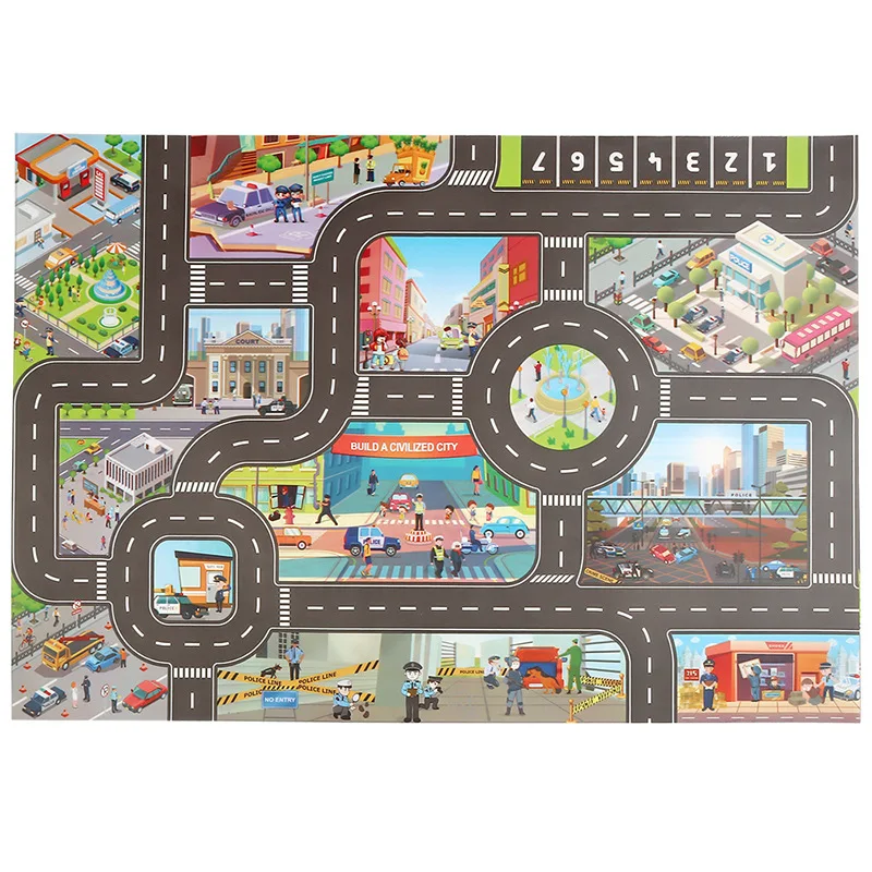 Un tapis ludique et coloré qui stimule l’imagination de votre enfant tout en s’amusant avec ses petites voitures et figurines.