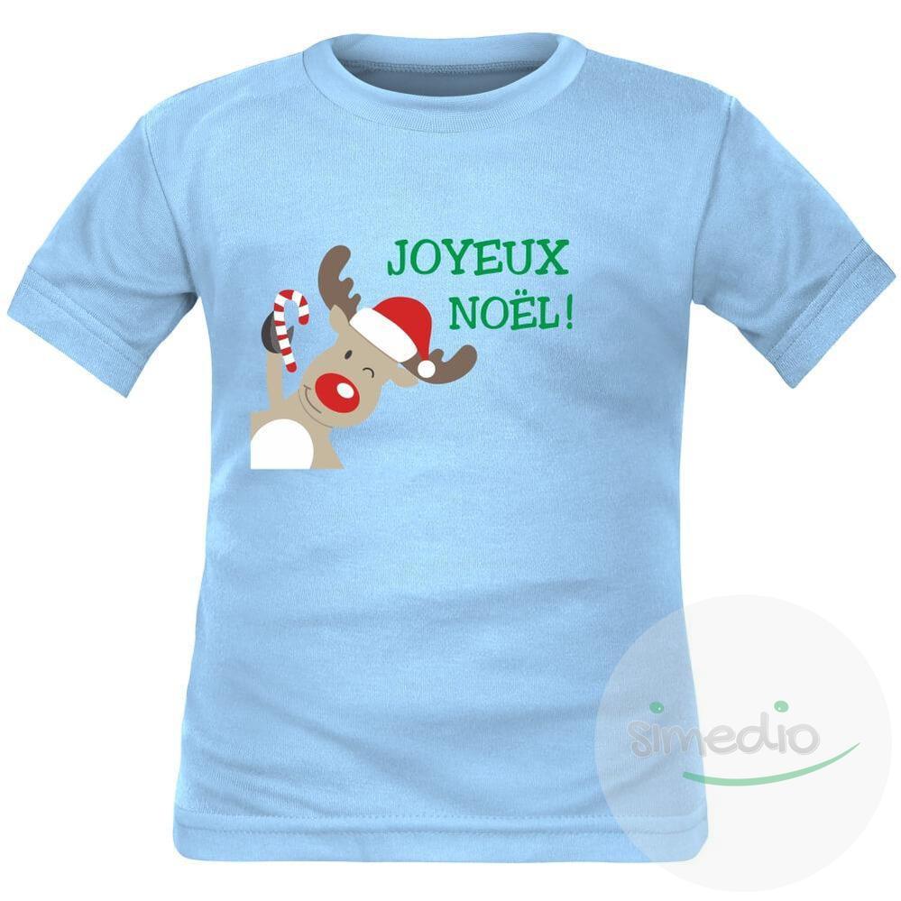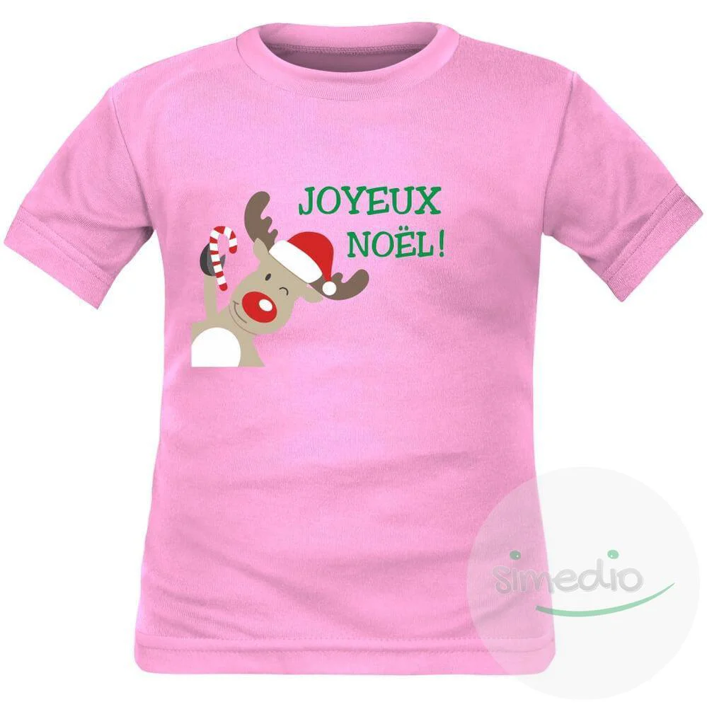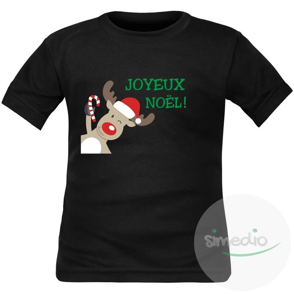 Compléter vos habits festifs avec ce tee-shirt à motif joyeux Noël pour enfant. Tout le monde aura part à son petit renne au nez rouge. Que sera Noël sans les rennes ?