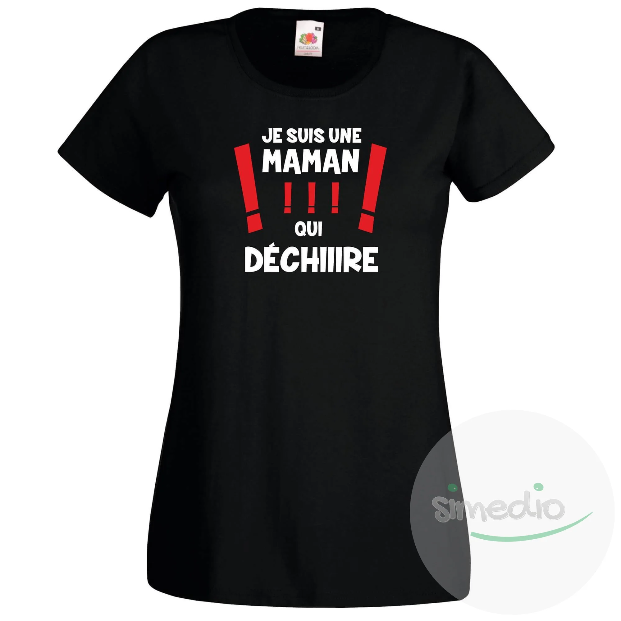 Tee-shirt à manches courtes avec une coupe cintrée. Très populaire car il est très agréable à porter et original avec son inscription sur le devant : Je suis une maman qui déchire !!!!!