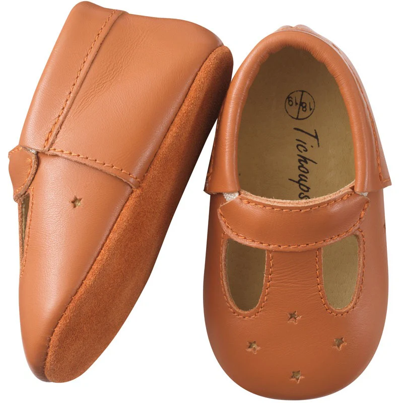 Chaussures bébé cuir souple adaptées pour l’intérieur et en extérieur par temps sec. Semelle extérieure en cuir suédé.
