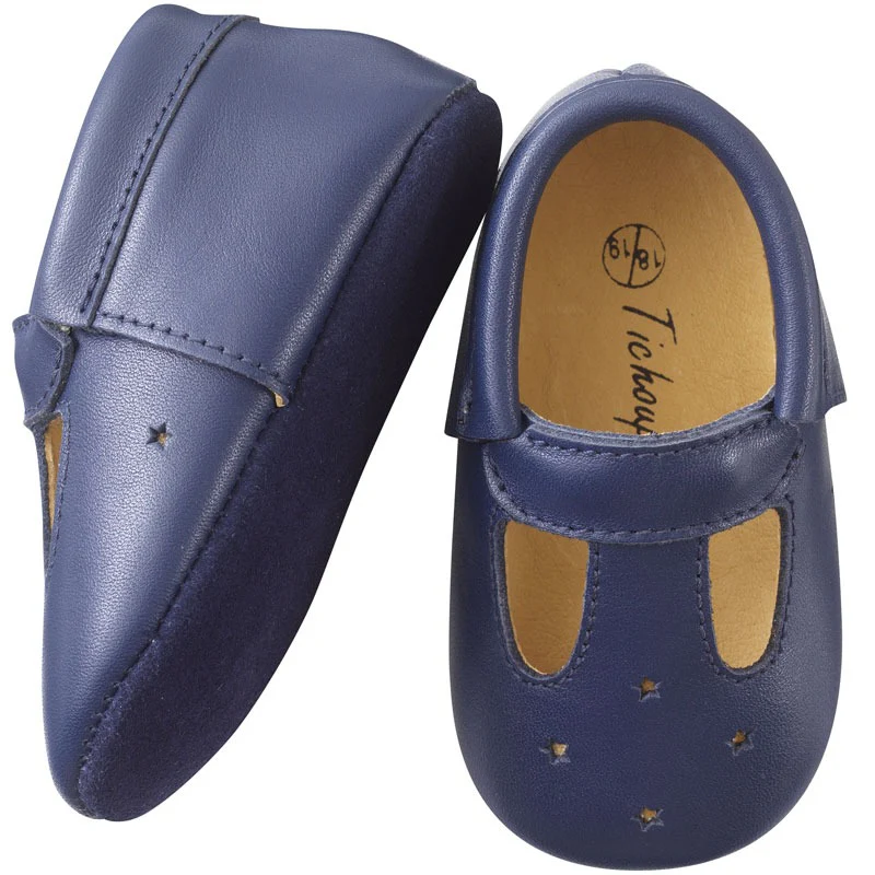 Chaussures bébé cuir souple adaptées pour l’intérieur et en extérieur par temps sec. Semelle extérieure en cuir suédé.