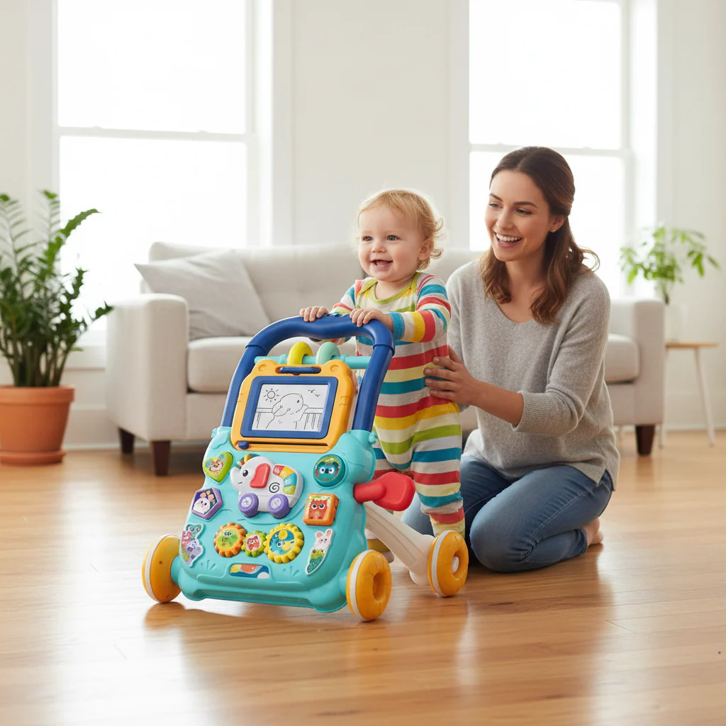 Trotteur Musical 3-en-1 pour Bébé – Chariot de Marche avec Tableau d’Activités et Ardoise Magique