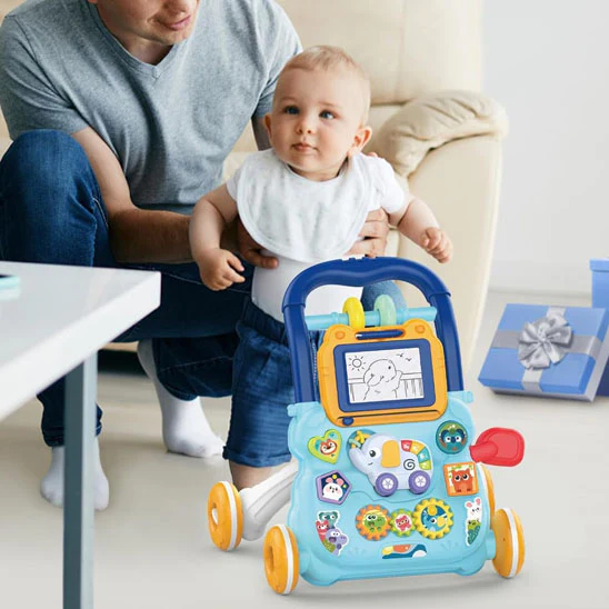 Accompagnez les premiers pas de votre bébé avec ce trotteur musical 3-en-1 qui combine aide à la marche, éveil sensoriel et créativité. Le chariot stable et sécurisé encourage bébé à se lever et marcher en toute confiance, tandis que le tableau d’activités et l’ardoise magique stimulent son développement cognitif.