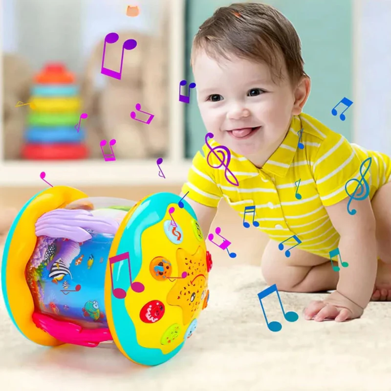Ce petit cylindre intelligent est équipé de 3 roulettes. Bébé peut le faire avancer d’avant en arrière et s’amuser ou le suivre lorsqu’il roule.
